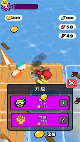 3、建造防御塔楼,部署鱼叉弩机应对鲨鱼持续攻击