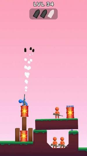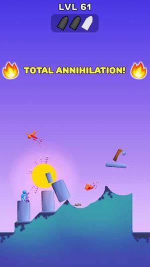 本作采用全3D场景构建,玩家需通过抛物线弹道计算实现精准爆破。每关卡设置动态评分机制,建筑物摧毁率与战术选择将直接影响最终评级。随着游戏进程推进,可解锁电磁脉冲炮、高爆燃烧弹等12种特殊武器模块,通过资源收集提升装备属性,打造个性化战斗体系。
