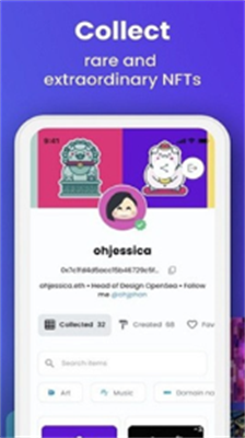 「星辰大海」:界面设计非常专业,数字藏品分类清晰,最近刚入手几幅新锐艺术家的作品