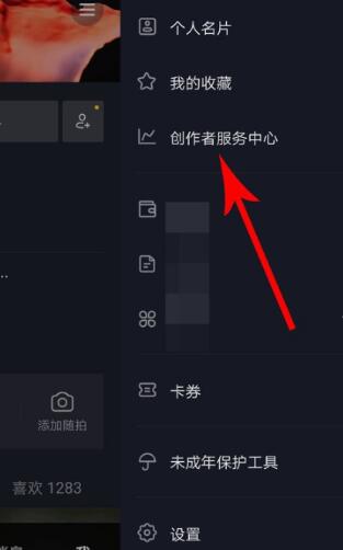 2、在个人主页右上角点击展开功能菜单,滑动选项列表即可发现新增的"创作者服务中心"入口标识。