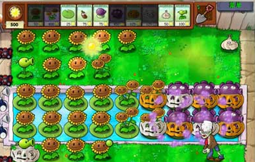 初始植物配置需优先选择向日葵与双子向日葵作为能量核心,配合大蒜构筑路径引导体系。具体操作流程如下:在泳池两侧第三列位置种植大蒜形成诱导屏障,同步于第四列布置双排向日葵加速产能。