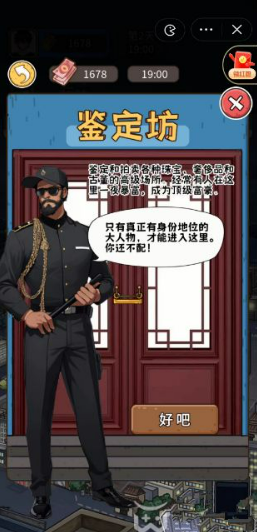 功能说明:作为游戏内顶级的鉴宝交易场所,玩家可在此进行古董珠宝鉴定、稀有藏品拍卖等高端商业活动,系统设置了严谨的准入门槛以保证交易环境的专业性。